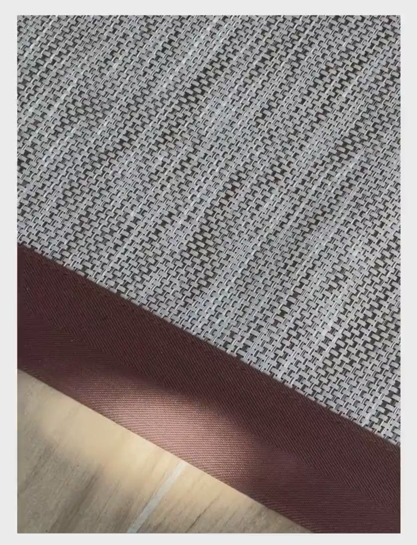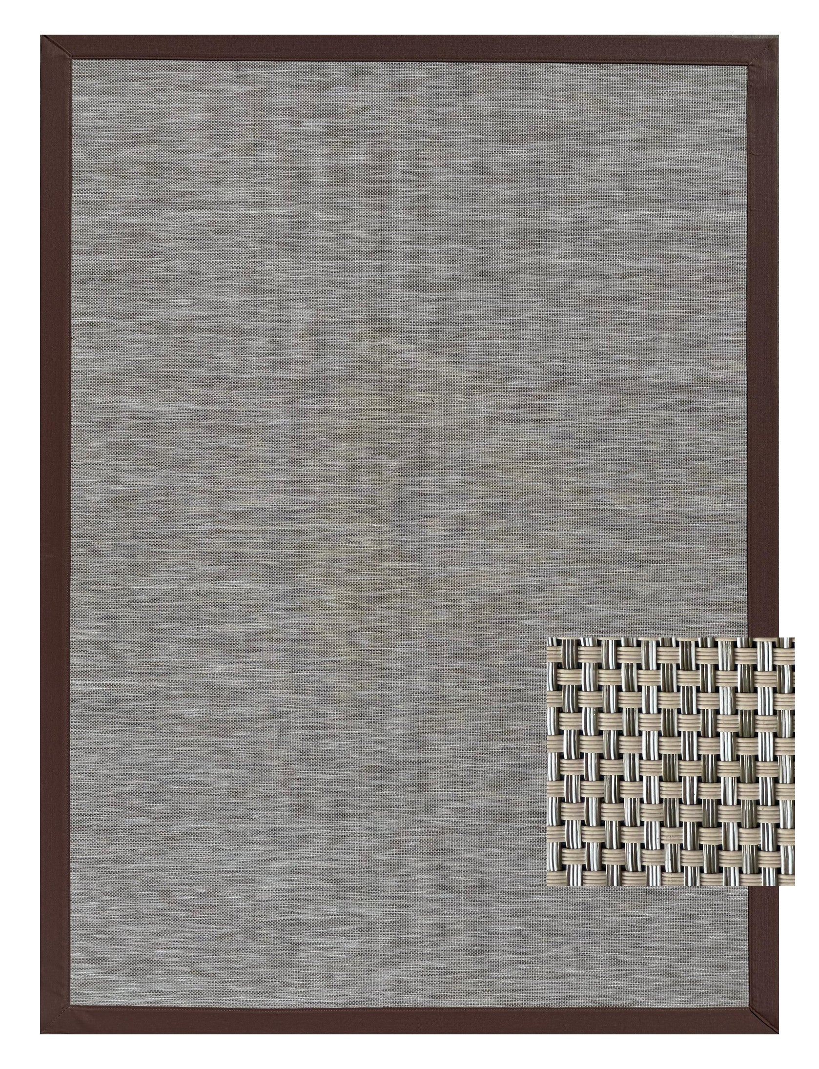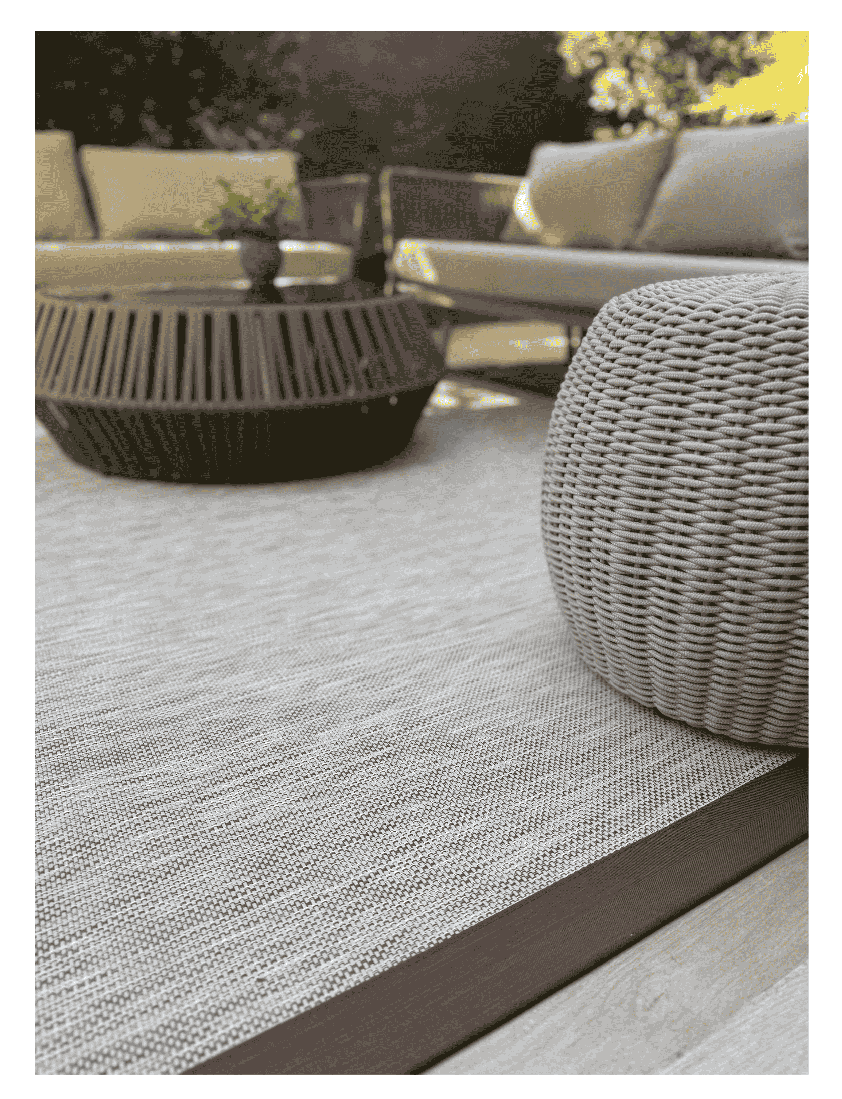 Alfombra vinílica Bari:  Tejido trenzado en vinilo de alta resistencia, que combina tonos arena y beige con detalles en blanco. Su diseño entrecruzado aporta un look moderno y versátil, fácil de mantener y perfecto para interior o exterior. Disponible en medidas de 1.6x2.3mts, 2.0x3.0mts, 2.5x3.5mts.