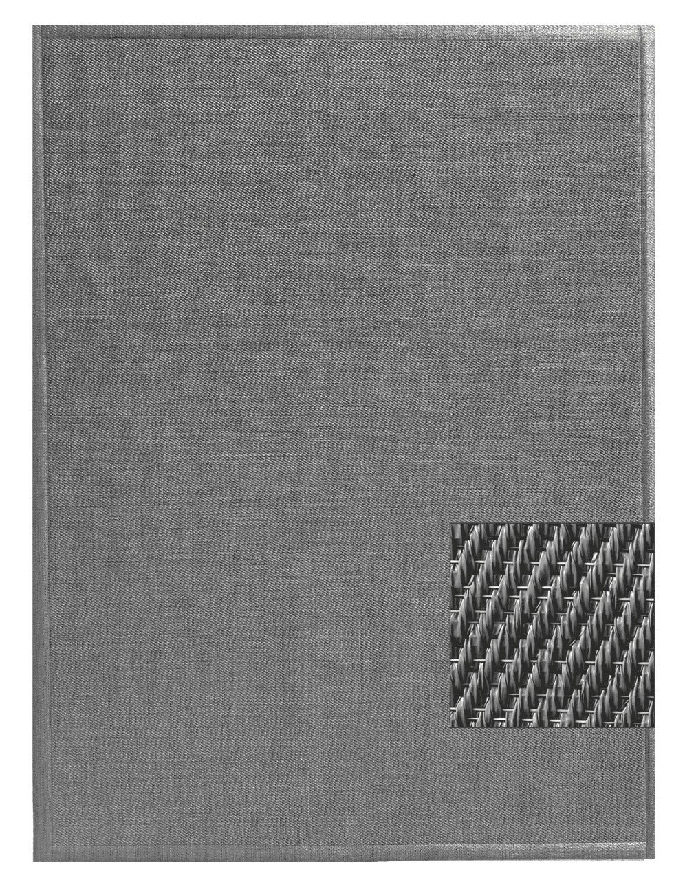 Alfombra vinílica Petra: Tejida con un entramado en tonos gris oscuro, ideal para un ambiente moderno, tanto en interior como exterior. Impermeable, fácil de limpiar y antideslizante. Disponible en medidas de 1.5x2.0mts y 2.0x3.0mts.