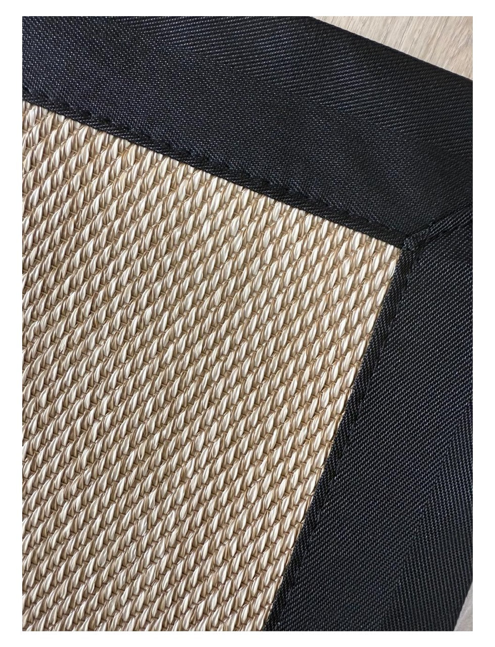 Alfombra de vinilo Trenzada Telmo color Beige con borde color negro.