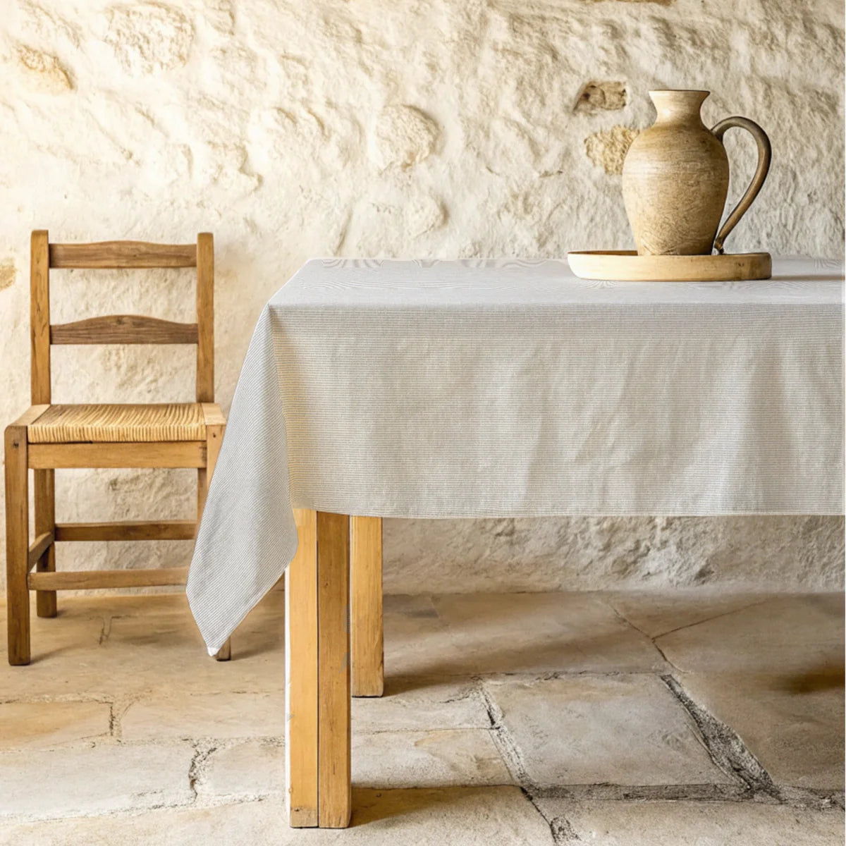 Mantel confeccionado, con acabado hidrófugo anti manchas, lo que hace repeler los líquidos y además, es respetuoso con el medio ambiente.