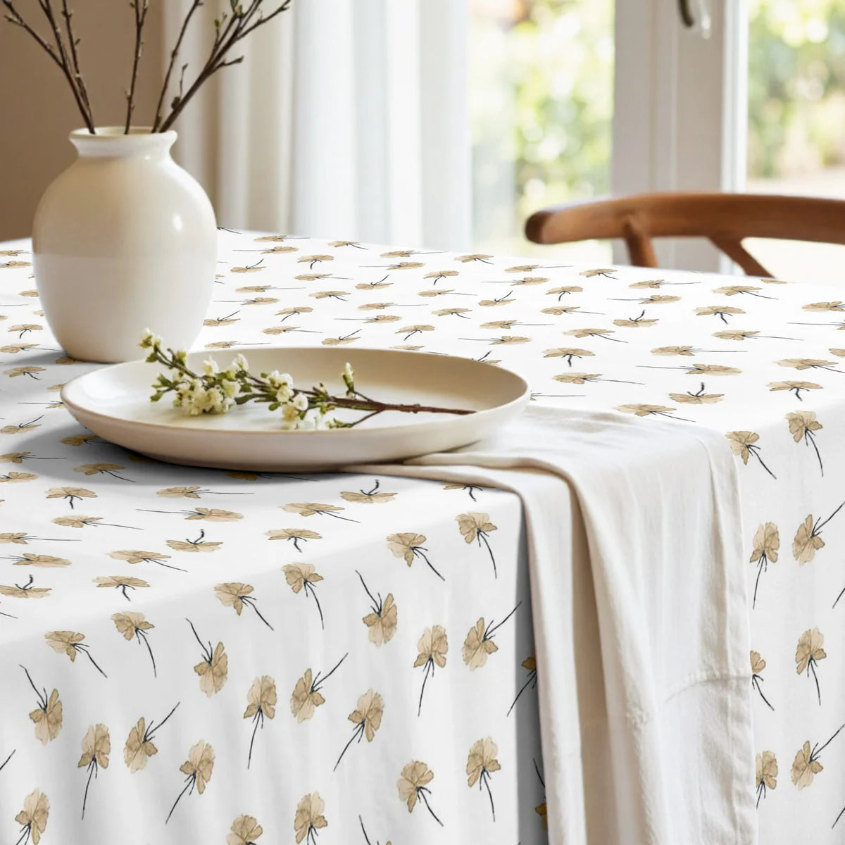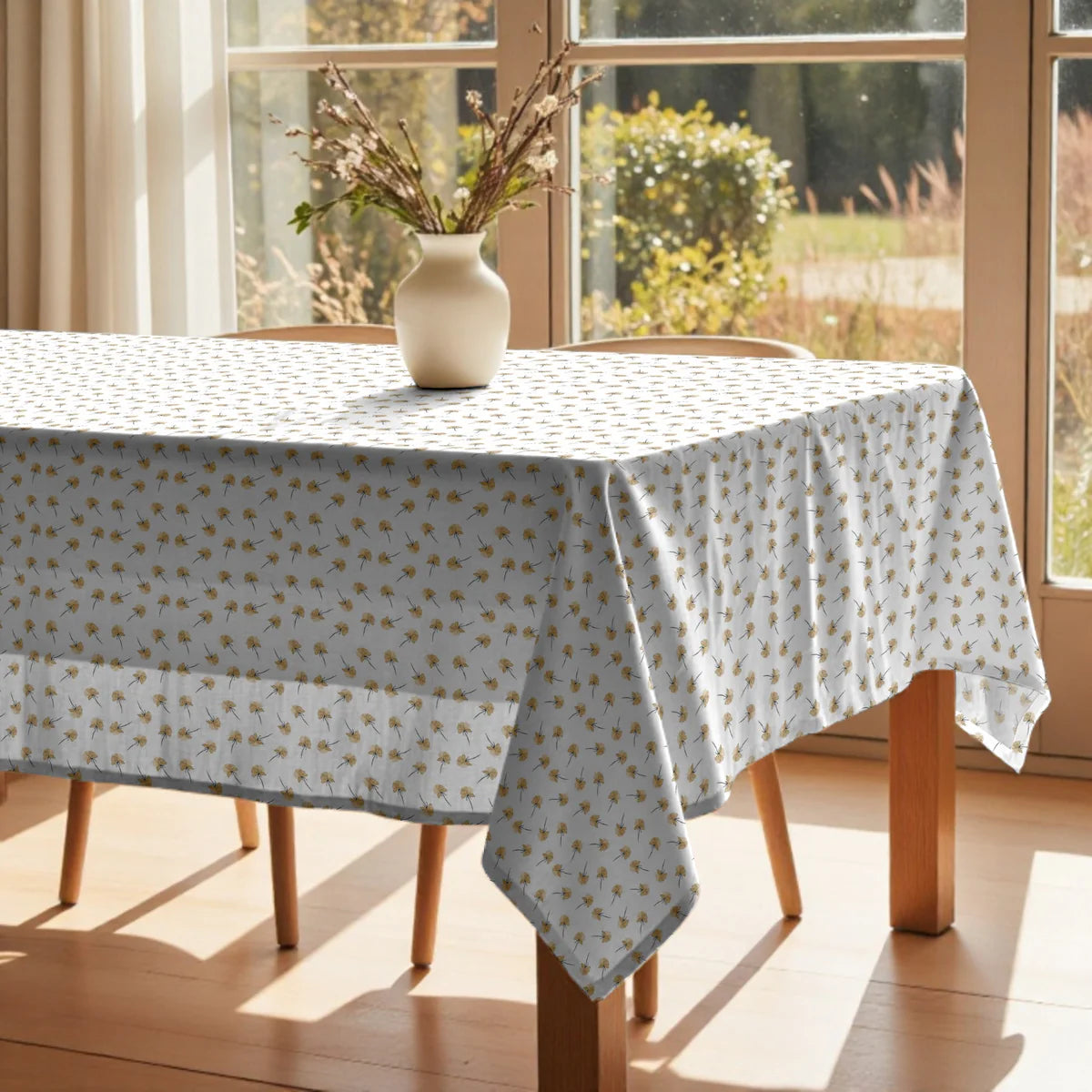 Mantel confeccionado, con acabado hidrófugo anti manchas, lo que hace repeler los líquidos y además, es respetuoso con el medio ambiente.