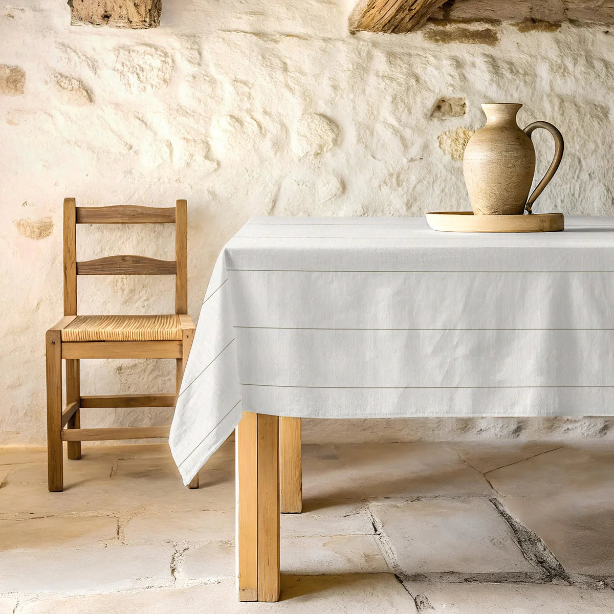 Mantel confeccionado, con acabado hidrófugo anti manchas, lo que hace repeler los líquidos y además, es respetuoso con el medio ambiente.