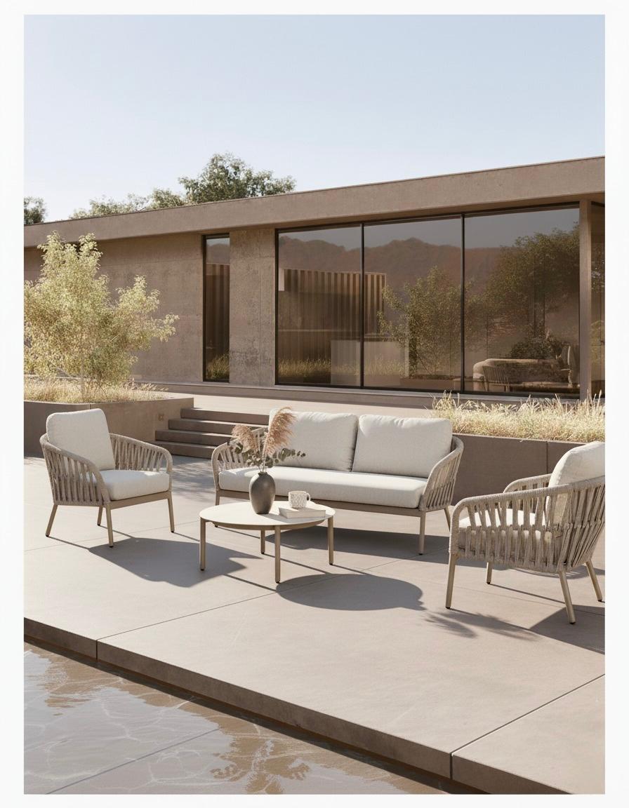 Diseño, comodidad y estilo se unen en el Set Saga Arena, una propuesta moderna para disfrutar tus espacios exteriores durante todo el año.