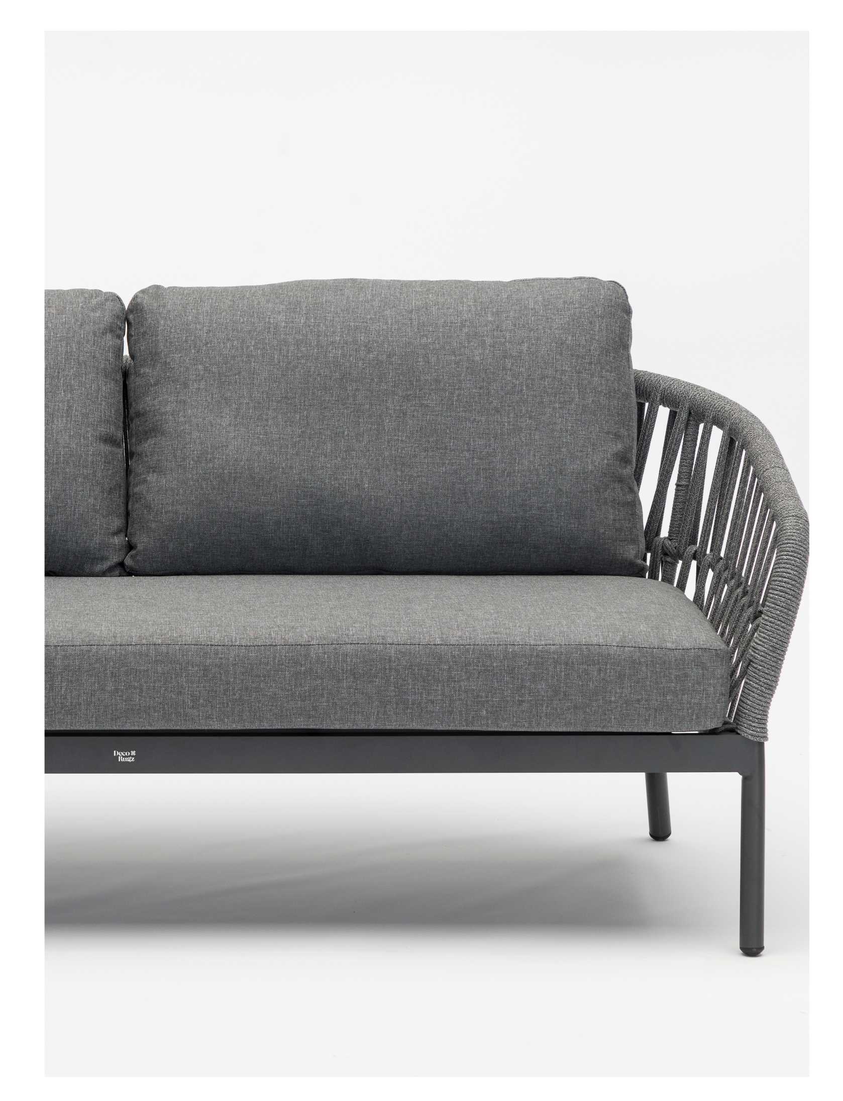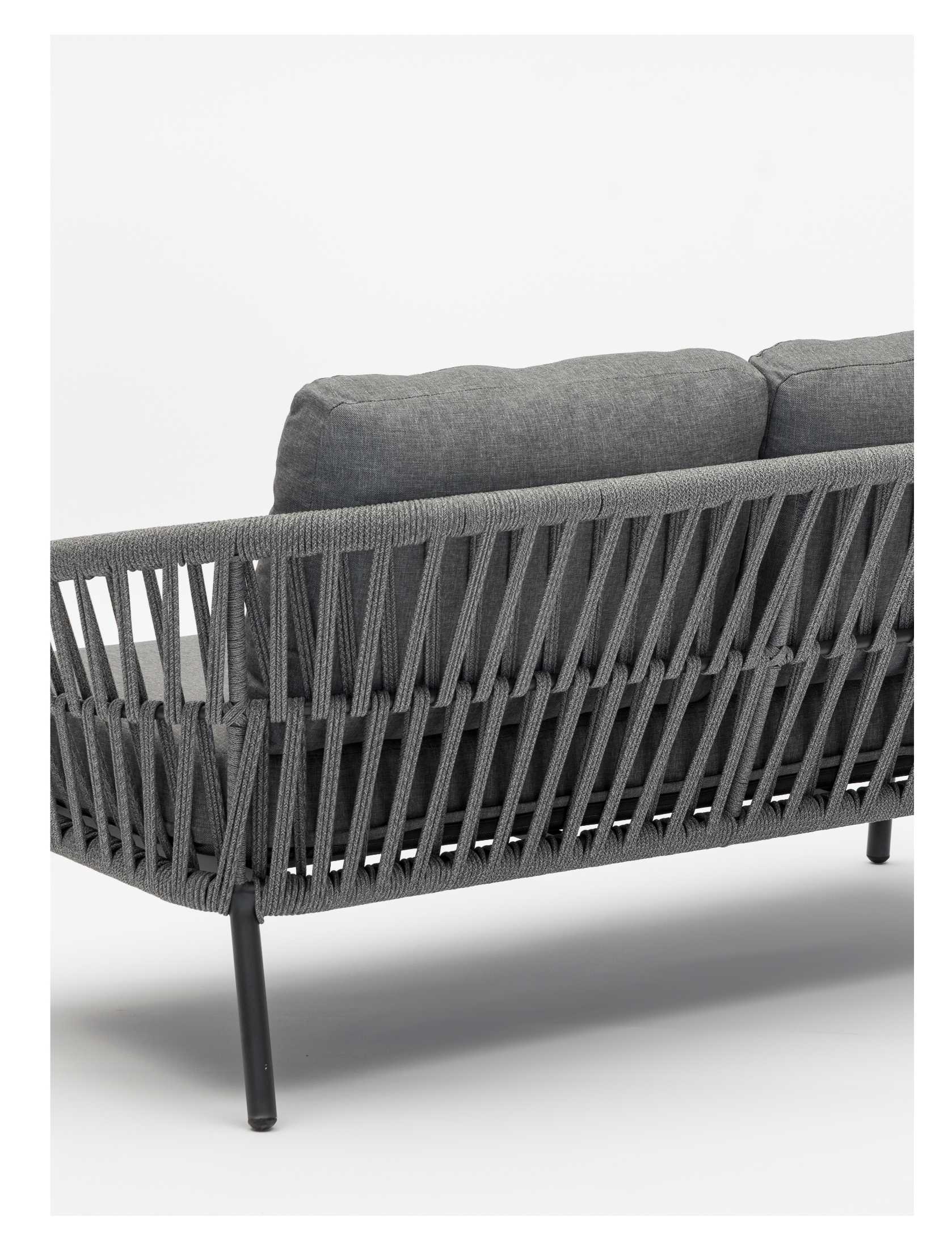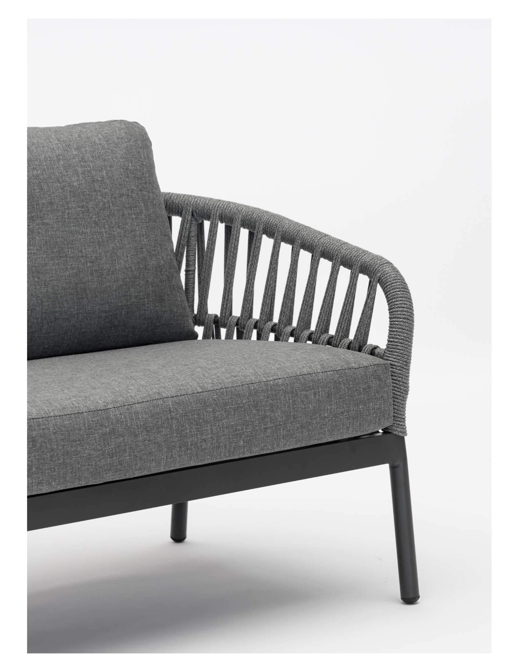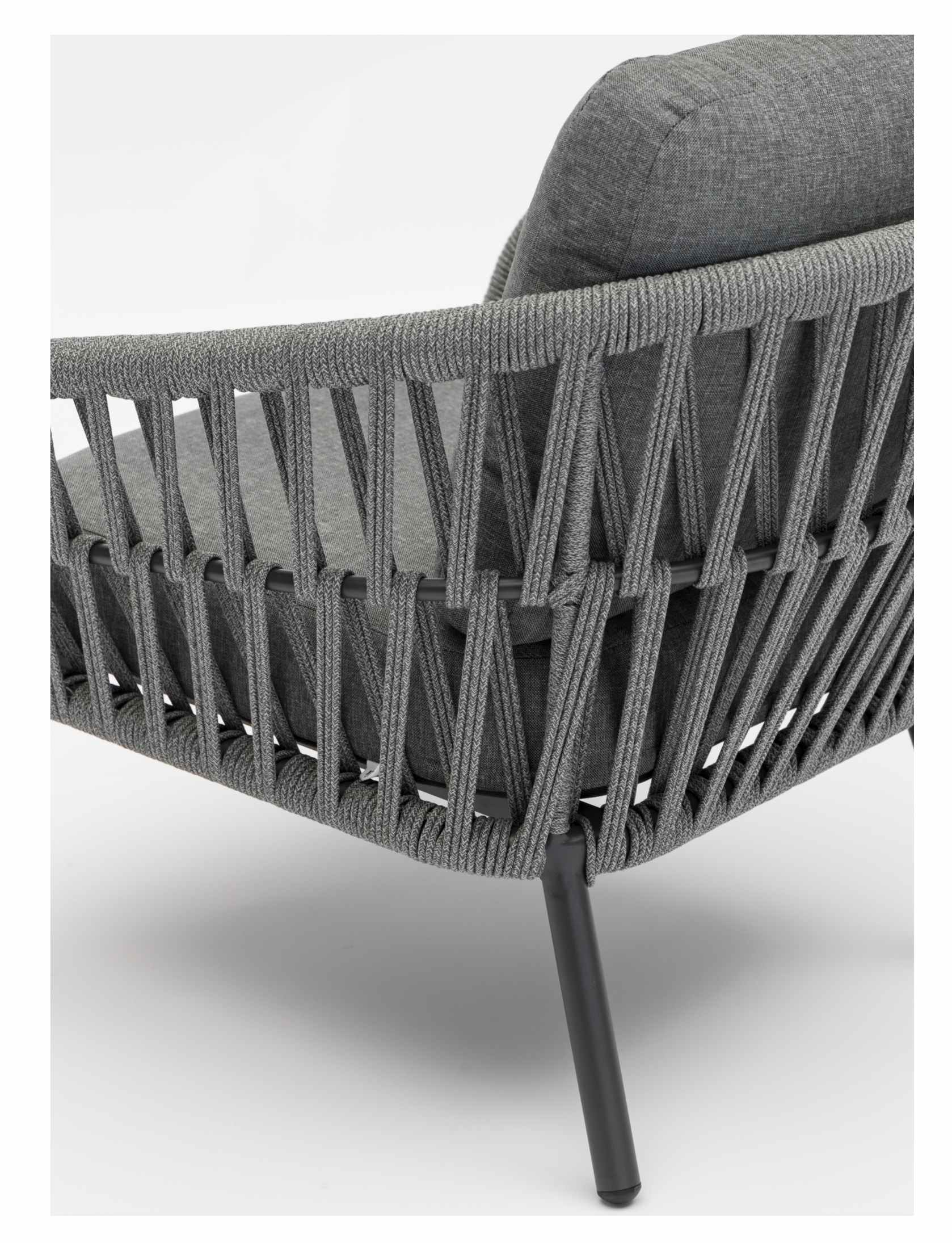 Su estructura de aluminio electropintado garantiza durabilidad y fácil mantención, mientras que el trenzado de cuerda Olefin en respaldo y brazos aporta un toque elegante y acogedor.